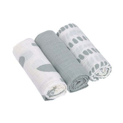 • 三件裝包巾採用純色和俏皮印花。由有機棉製成,因此對敏感的嬰兒皮膚特別溫和
